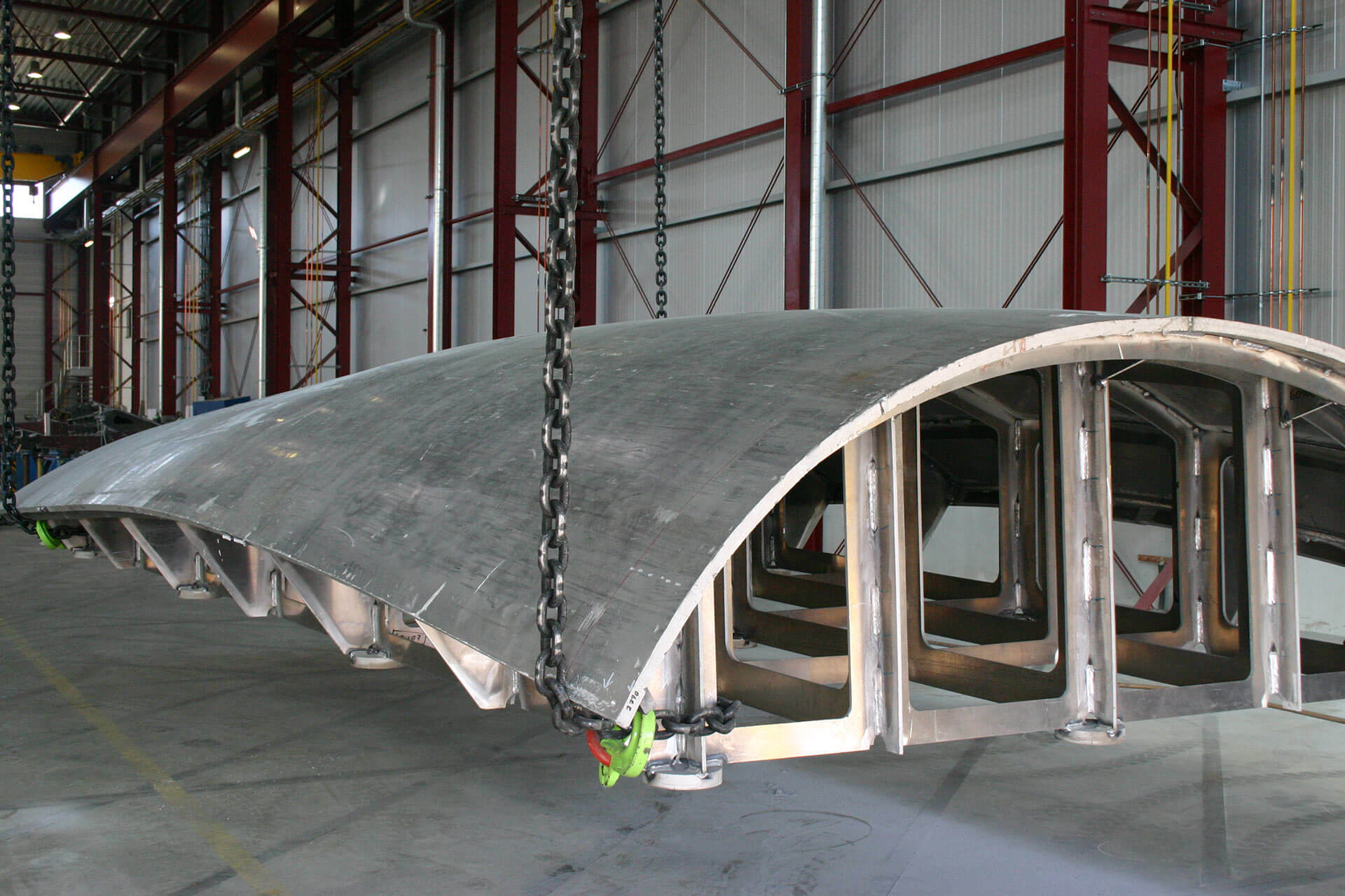 Qualitäts- und Termintreue sichern wir durch eigenes Qualitäts- und Projektmanagement. 3D-Laservermessungen sorgen für Formgenauigkeit, Schweißnähte werden per ZFP und Heliumlecktests geprüft. Wir fertigen Laminiervorrichtungen bis 25 m Länge, 5 m Höhe und 30 t Gewicht, teils mit 40 mm starken Deckblechen. Verwendet werden hochwertige Materialien wie Stahl, Nickel 36 (INVAR) und Aluminium.