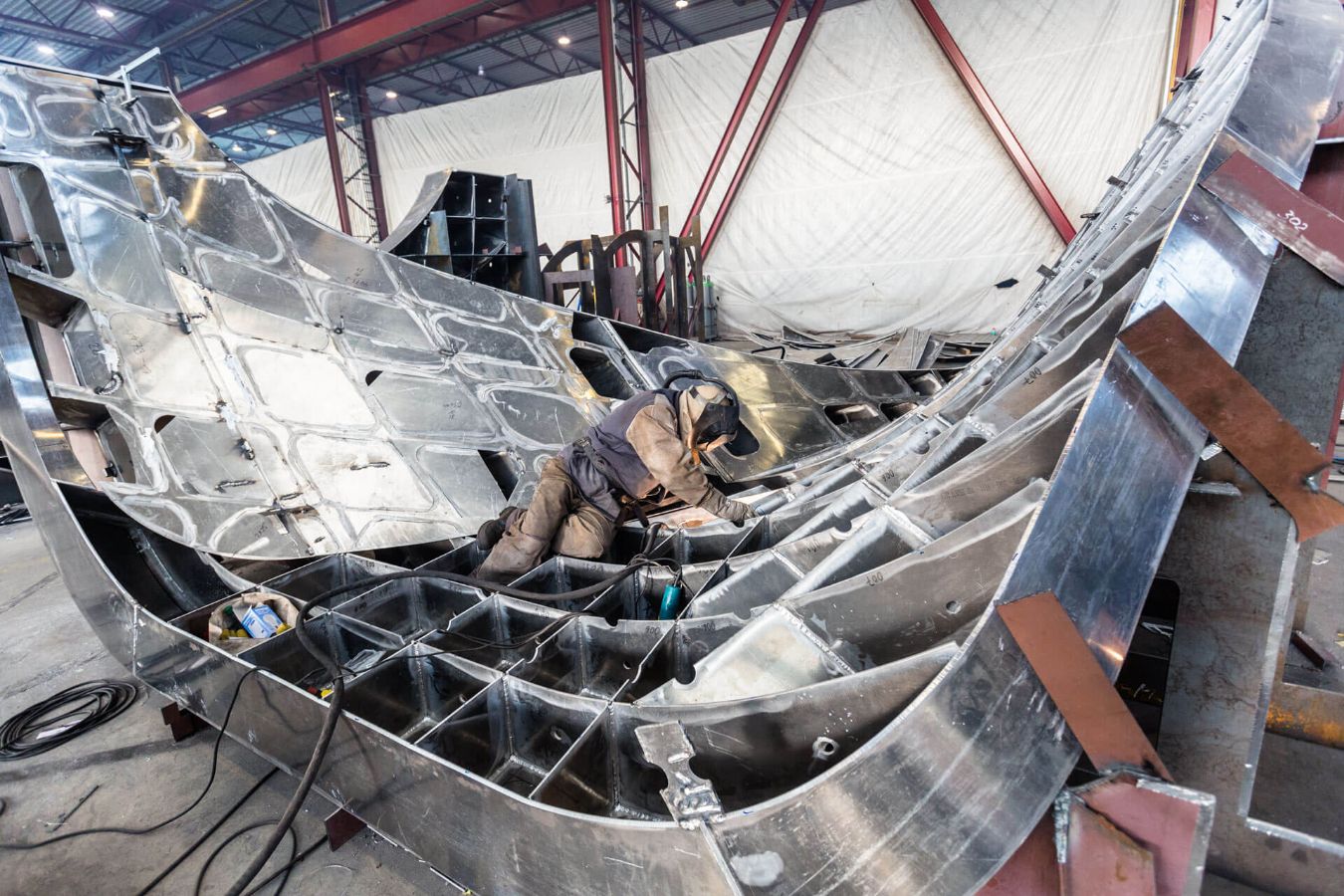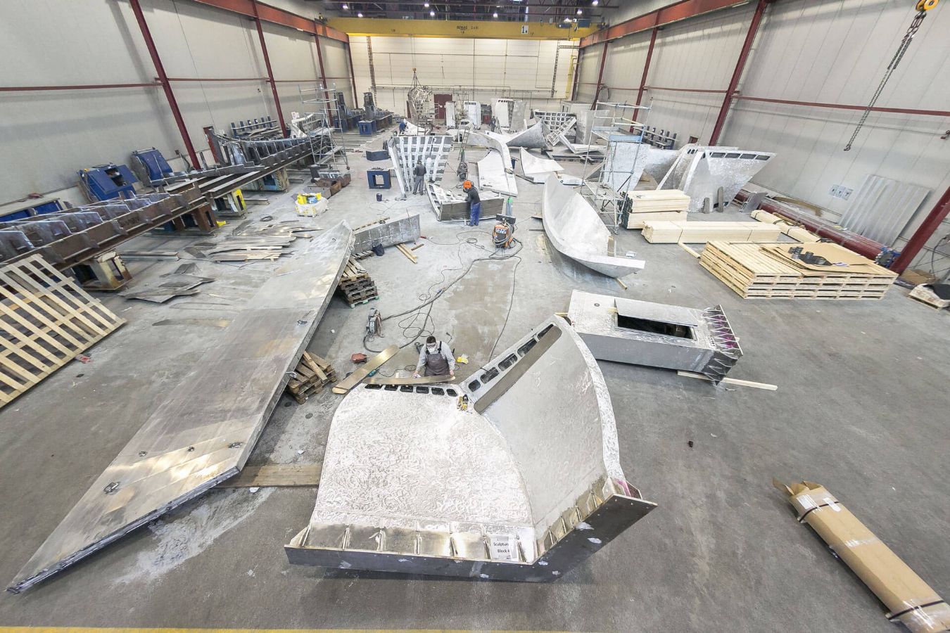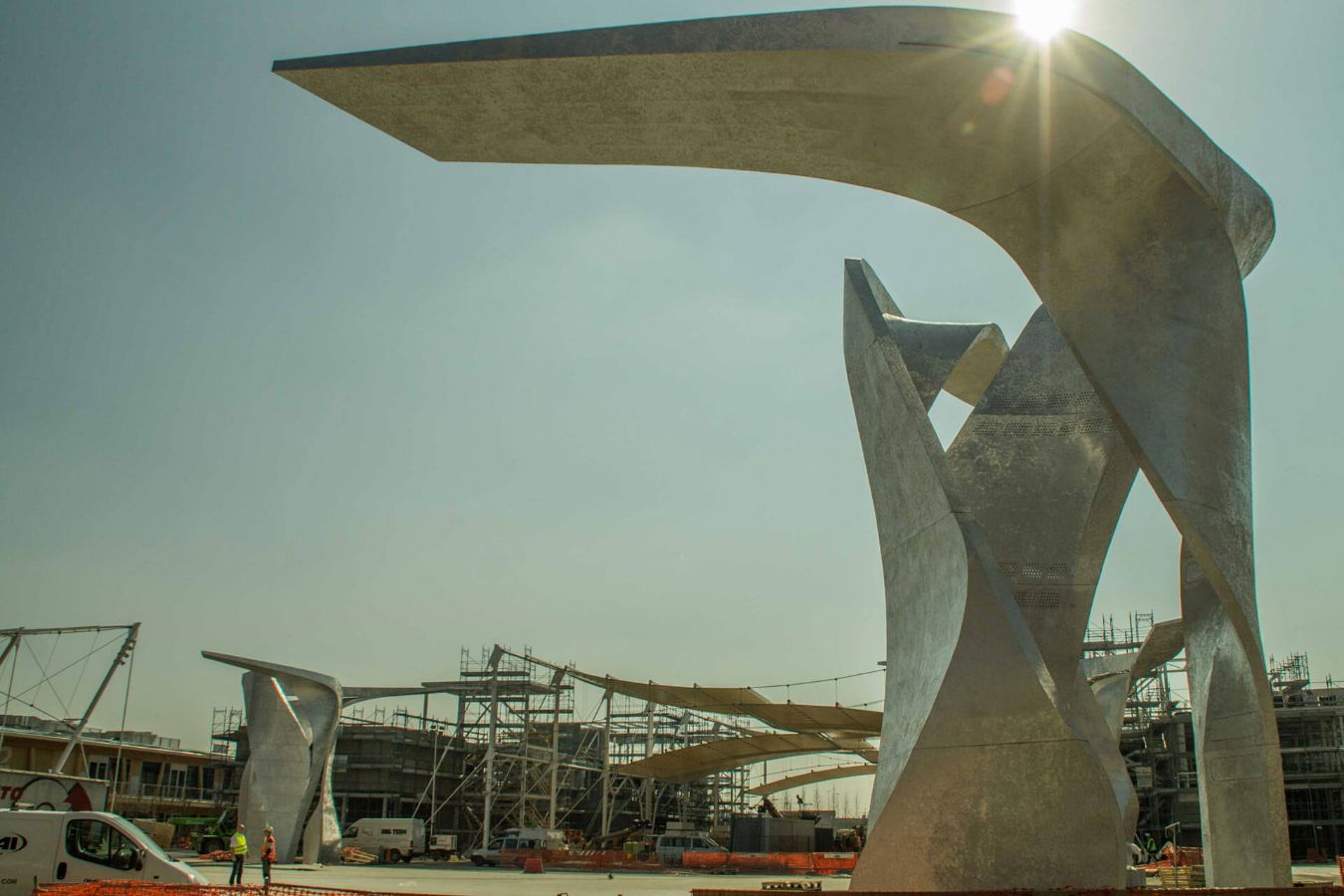 Sie stammten vom Architekten und Künstler Daniel Libeskind, der unter anderem auch das Jüdische Museum in Berlin entworfen hat. Die zehn Meter hohen und 15 Tonnen schweren Skulpturen besteht aus mattgeschliffenem Aluminium. Die in ihrer Oberfläche integrierten LEDs machen eine grafische Animation möglich. Mit der Beleuchtung aus tausenden LEDs greift die Skulptur in Form eines Flügels („The Wings“) zudem spielerisch das Thema Digitalisierung auf.